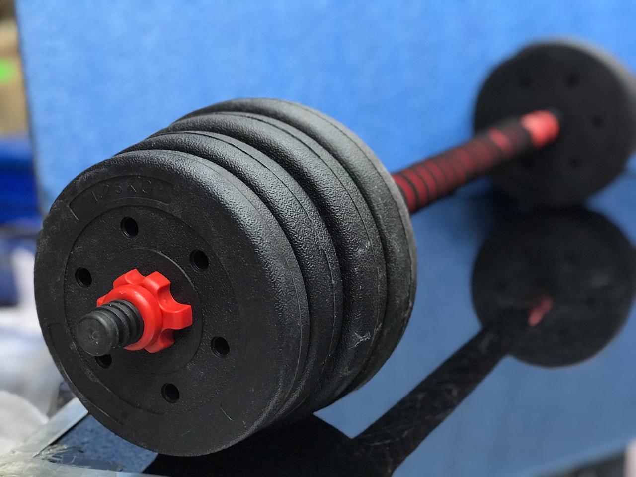 Set Mancuerna y Barra 20 kg (Plastico c/cemento)